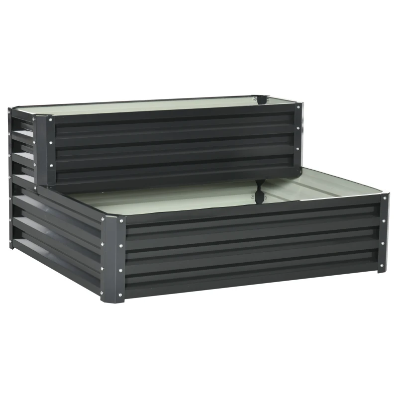 Outsunny 2 Tier Raised Garden Bed, Galvanised Planter Box with Open Bottom for Vegetables Flowers Herbs, 120x101x58cm, Dark Grey