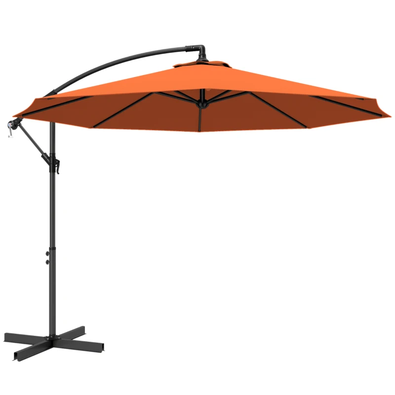 Outsunny 3 m Cantilever Parasol with Cross Base, Offset Outdoor Umbrella with Crank Handle, Hanging Sun Shade, Orange