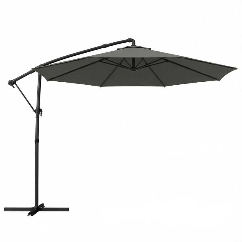 Outsunny 3 m Garden Cantilever Parasol with Cover, Round Overhanging Umbrella with 360° Rotation, Tilt, Grey
