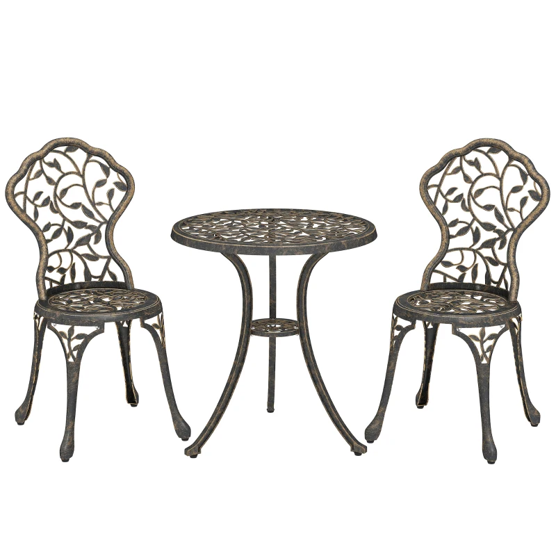 Outsunny 3 Pcs Aluminium Bistro Set Garden Furniture Dining Table Chairs Outdoor Seat Patio Seater Brown