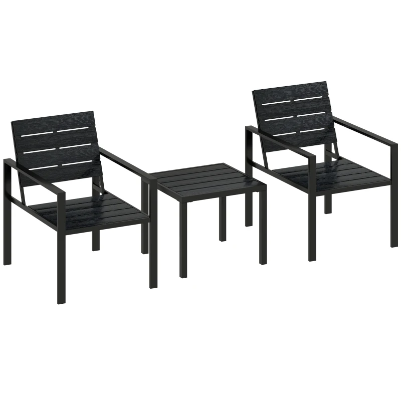 Outsunny 3 Pieces Garden Bistro Set for 2, Outdoor Bistro Table and Chairs with Metal Frame, Plastic Patio Furniture Set