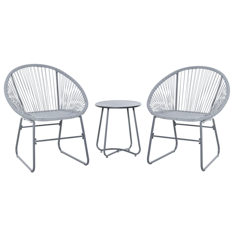 Outsunny 3 Pieces Outdoor PE Rattan Wicker Bistro Conversation Set Coffee Table and Chair Set for Outdoor Yard Grey