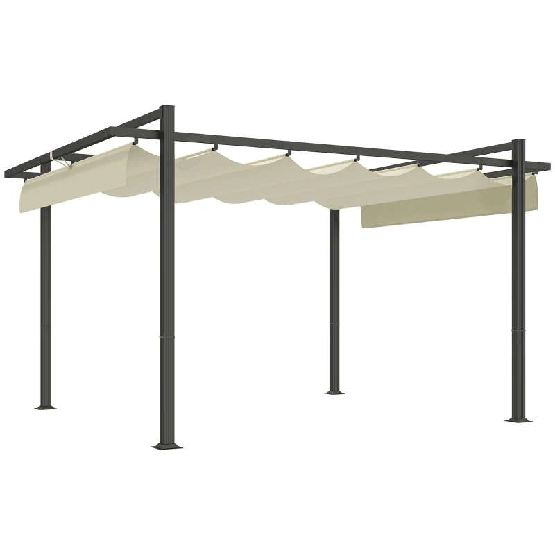 Outsunny 3 x 4m Aluminium Pergola, with Retractable Roof - Grey/Khaki