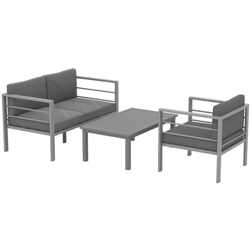 Outsunny 4 Piece Garden Furniture Set, 4 Seater Aluminium Garden Sofa Set with 2 Armchairs, Loveseat, Coffee Table and Cushions, Outdoor Conversation Conservatory Furniture for Patio, Charcoal Grey