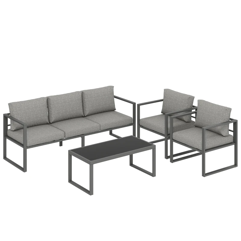Does your outdoor space feel incomplete, lacking a comfortable spot for family and friends to gather? Flimsy furniture often rusts and fades, making outdoor relaxation a short-lived dream. This outdoor furniture set from Outsunny offers a lasting solution. This four-piece set, built on a rust-resistant aluminium frame, invites you to sink into 8 cm sponge cushions. Create cherished moments with a reliable and stylish garden patio set designed for enduring comfort