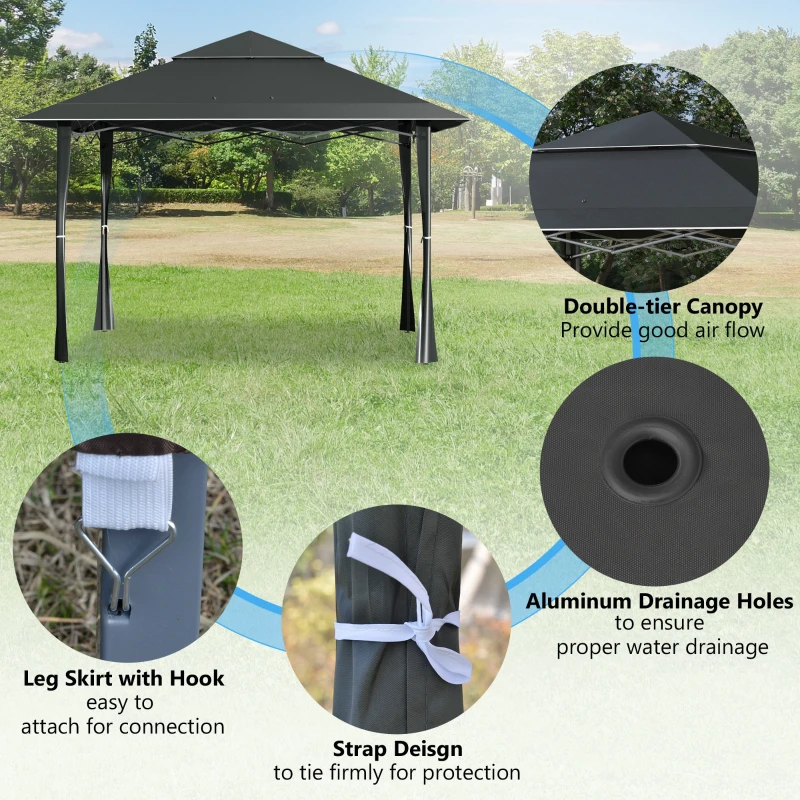 Outsunny 4 x 4m Pop-up Gazebo Double Roof Canopy Tent with UV Proof, Roller Bag & 3-Level Height Adjustable Outdoor Party, Steel Frame, Dark Grey