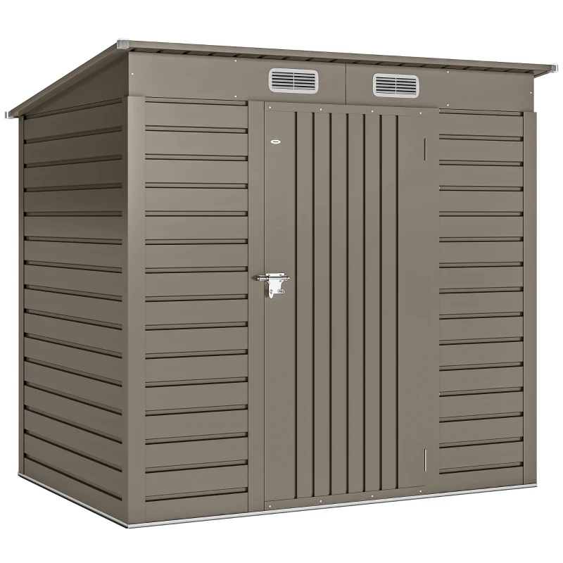 Outsunny 4 x 6ft Galvanised Metal Garden Shed, with Locking Door - Grey