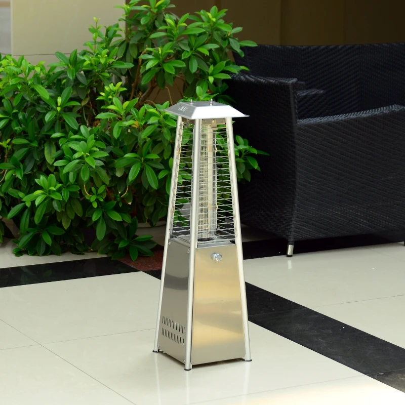 Outsunny 3KW Stainless Steel Outdoor Garden Patio Pyramid Heating Propane Gas Real Flame Heater Warmer Glass Tube with Wheels and Rain Cover - Silver