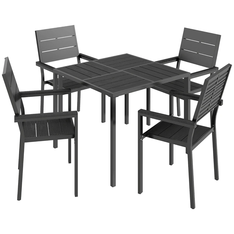 Outsunny 5 Pieces Garden Dining Set, Garden Table and Chairs Set for 4 with Square HDPE Table and Chairs with Armrests, Black