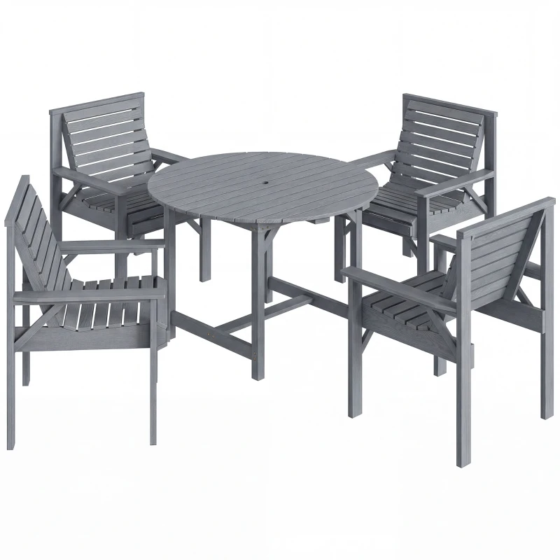 Outsunny 5 Pieces Garden Dining Set with Parasol Hole, Round Outdoor Table and Chairs, 4 Seater Wooden Garden Furniture, Grey