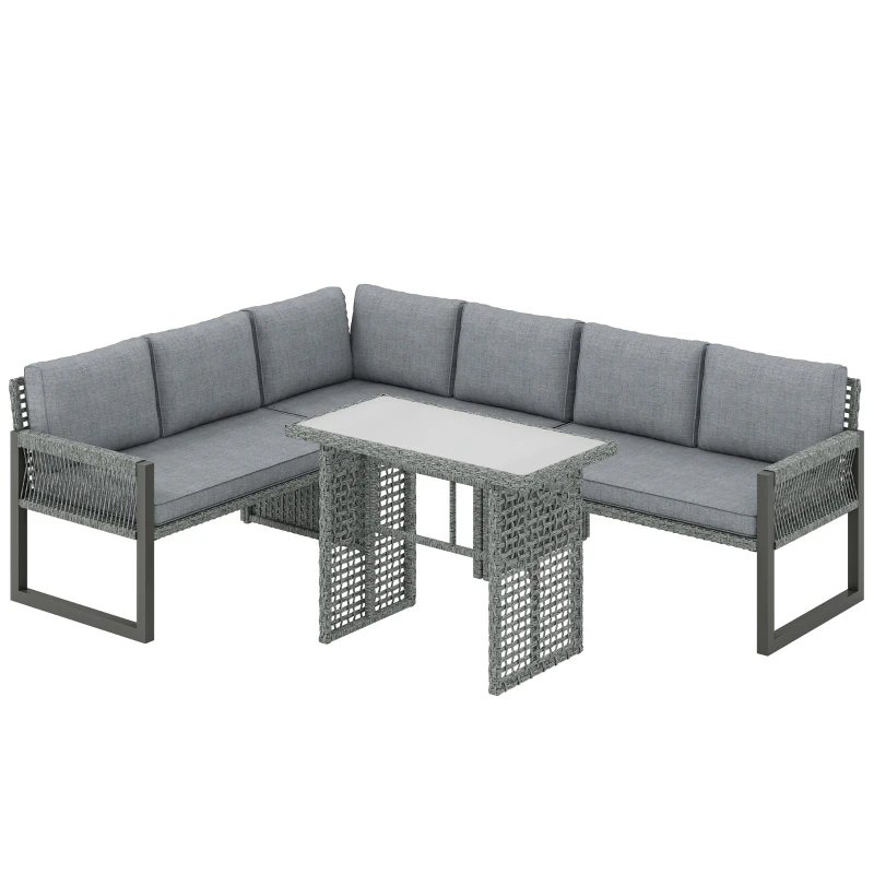 Outsunny 6 Seater Rattan Garden Furniture Set with 3 Loveseats, Table, Patio Rattan Furniture Corner Sofa Set, Grey