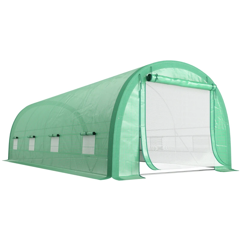 Outsunny 6 x 3(m) Polytunnel Greenhouse with Upgraded Structure, Mesh Door and Windows, 15 Plant Labels, Green