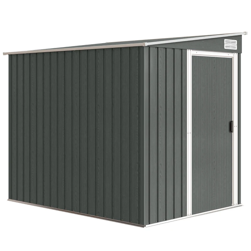 Outsunny 7 x 5ft Galvanised Metal Shed, with Sliding Door - Light Grey