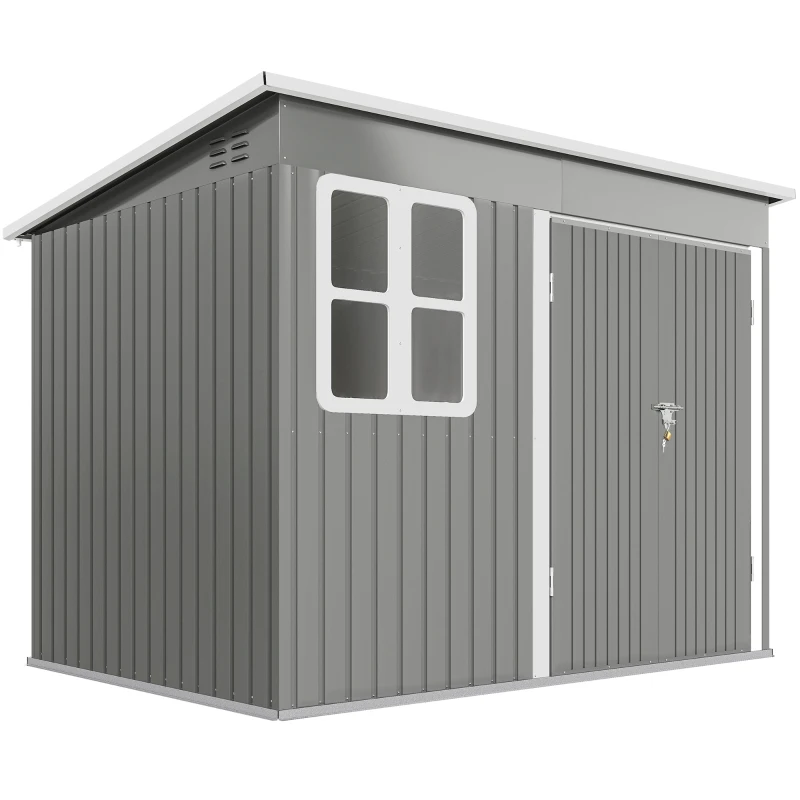 Outsunny 8.5 x 6ft Storage Shed Galvanised Steel Garden Shed, Metal Shed with Foundation Kit, Window, Lockable Wide Doors and Air Vents for Outdoor Patio, Light Grey