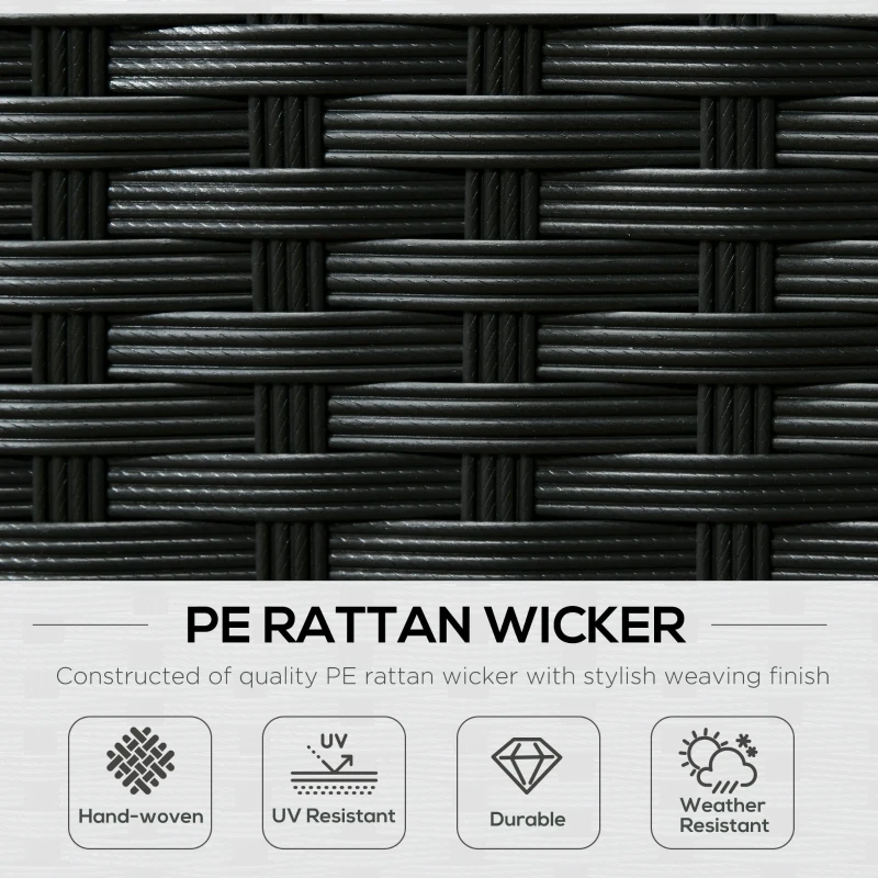 Outsunny 8 Pieces PE Rattan Corner Sofa Set, Outdoor Garden Furniture Set, Patio Wicker Sofa Seater w/ Cushion, Washable Cushion Cover & Tempered Glass Table, Black