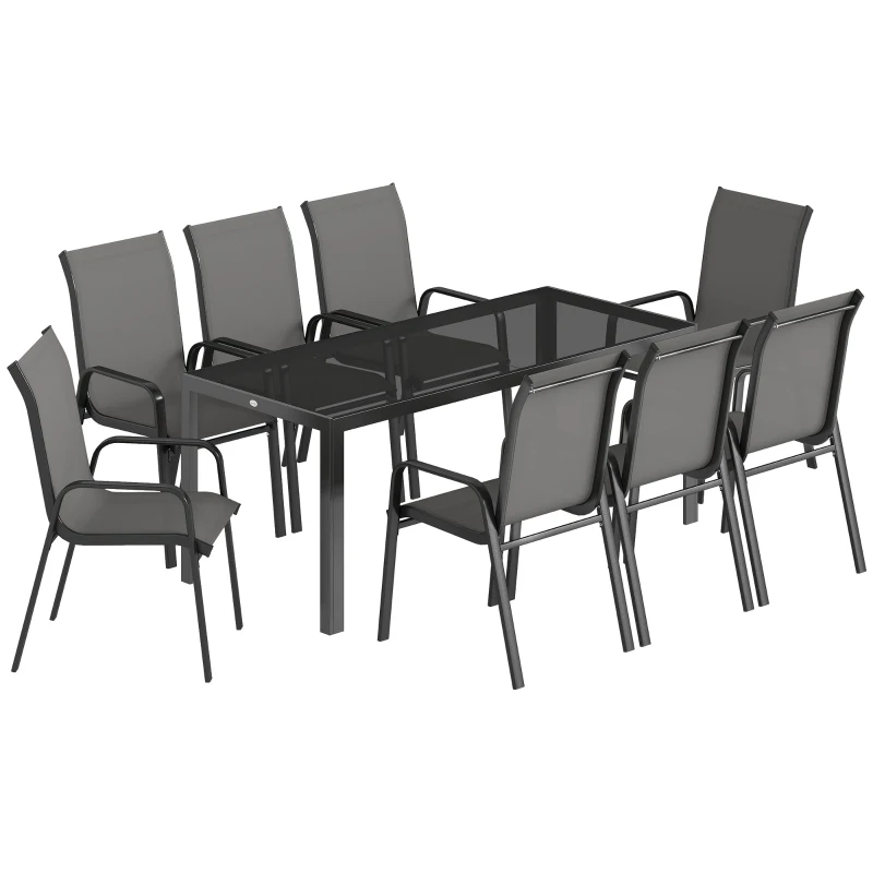 Outsunny 9 Pieces Garden Dining Set, Outdoor Table and Chairs Set for 8, Garden Furniture Set with Tempered Glass Top, Dark Grey