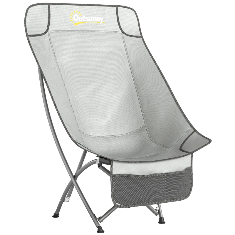 Outsunny Camping Chair for Adults Heavy Duty Folding Camp Chair with Side Pocket and Carry Bag Light Grey