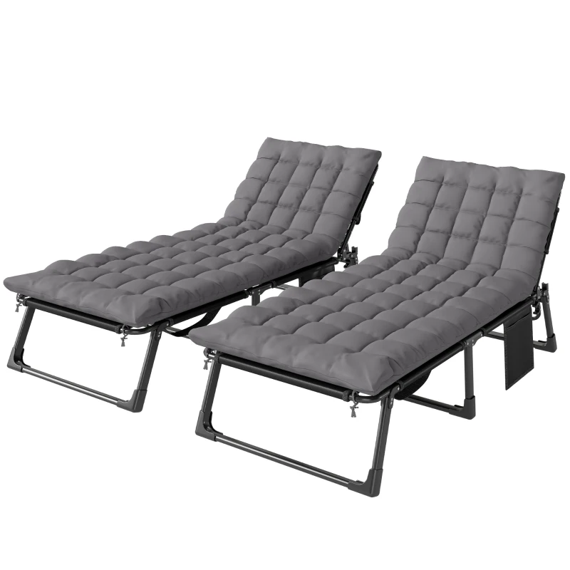 Outsunny Folding Sun Loungers for Garden Set of 2, 5-Position Oversized Camping Bed Recliner with Cushions, Dark Grey