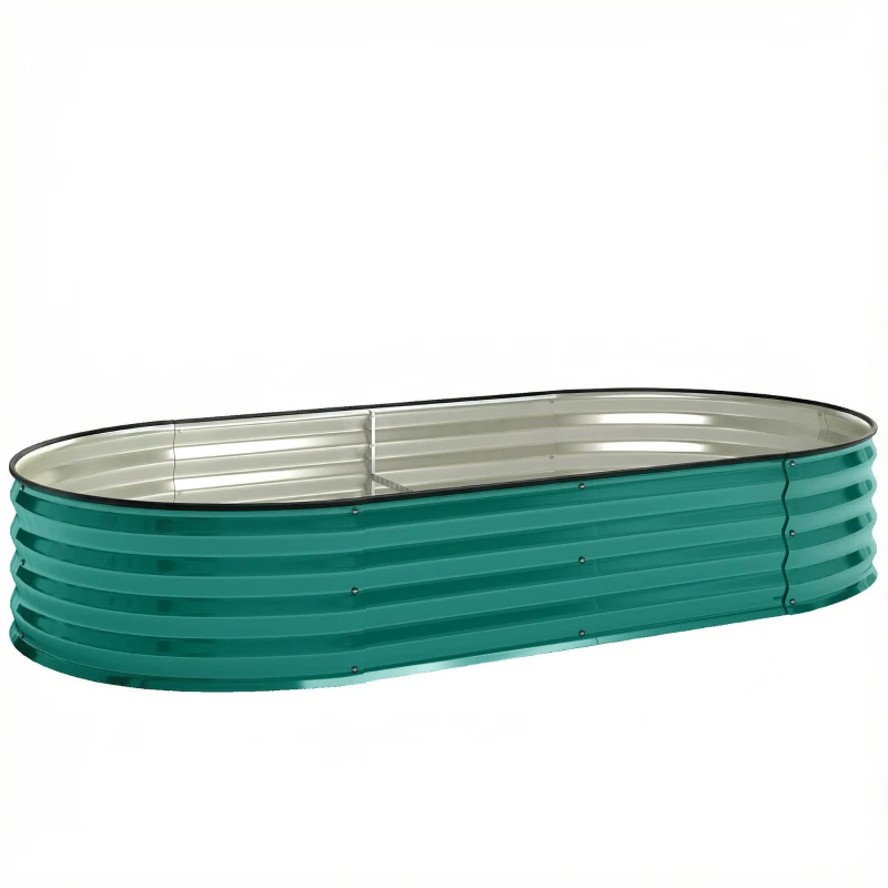 Outsunny Galvanised Raised Garden Bed, Metal Planter Box with Safety Edging, for Flowers, Herbs, Succulents, Light Green