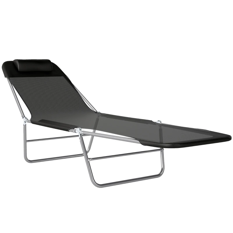 Outsunny Folding Sun Lounger, Texteline Reclining Sun Bed with 5 Position Adjustable Backrest, Headrest, Black
