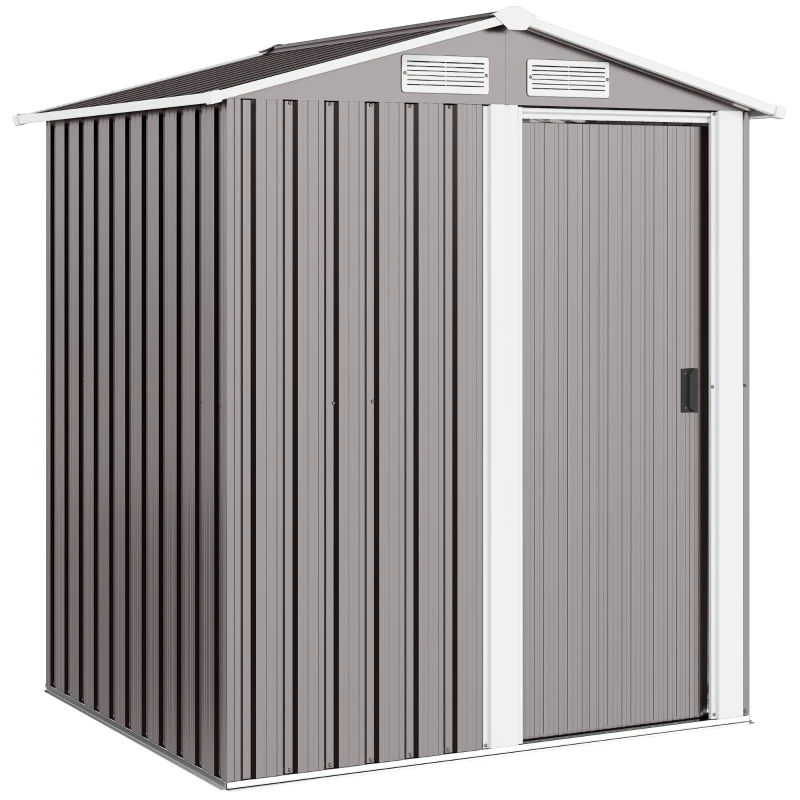 Outsunny Garden Metal Tool Storage Shed with Sliding Door, Sloped Roof and Foundation Kit, 152 x 132 x 188cm, Grey