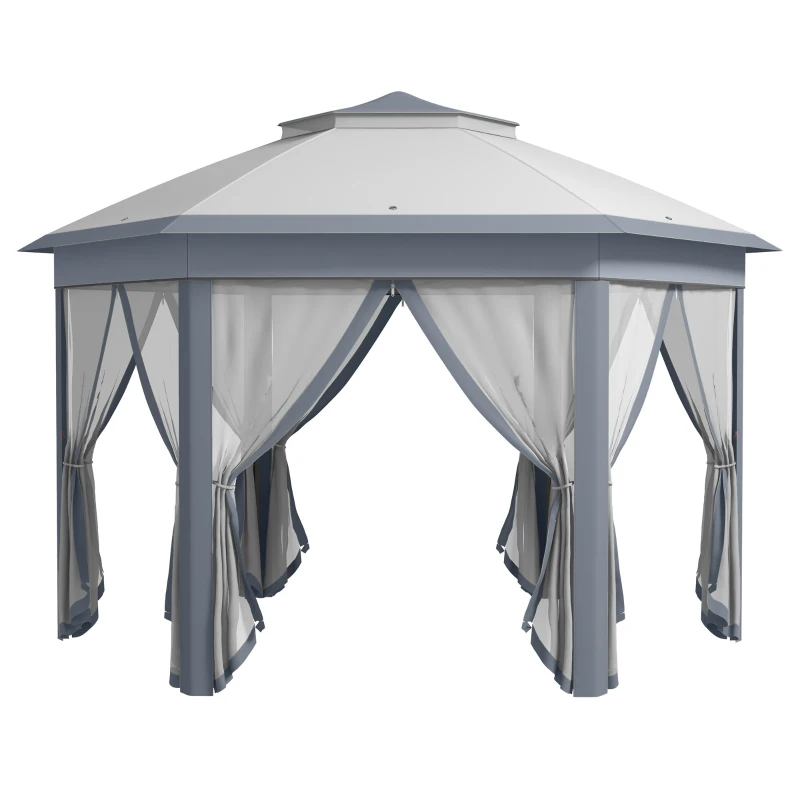 Outsunny 3 x 4m Metal Frame Hexagon Gazebo, with Curtains - Grey
