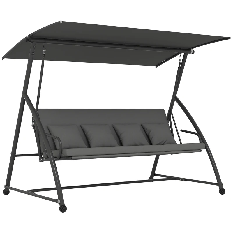 Outsunny Outdoor 2-in-1 Swing Chair Lounger 3 Seater Garden Swing Seat Bed Convertible Tilt Canopy W/ Cushion, Dark Grey