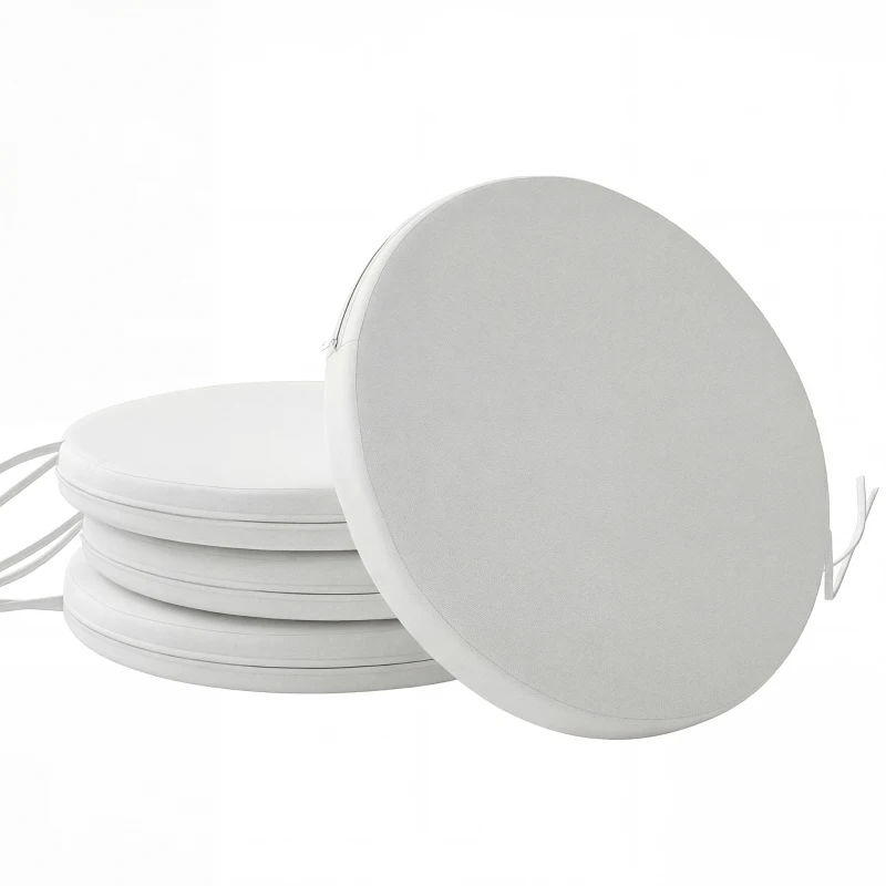 Outsunny Outdoor Bistro Chair Cushions Set of 4 with Removable Cover, 41 x 41 x 5 cm Round Seat Cushions with Ties, White