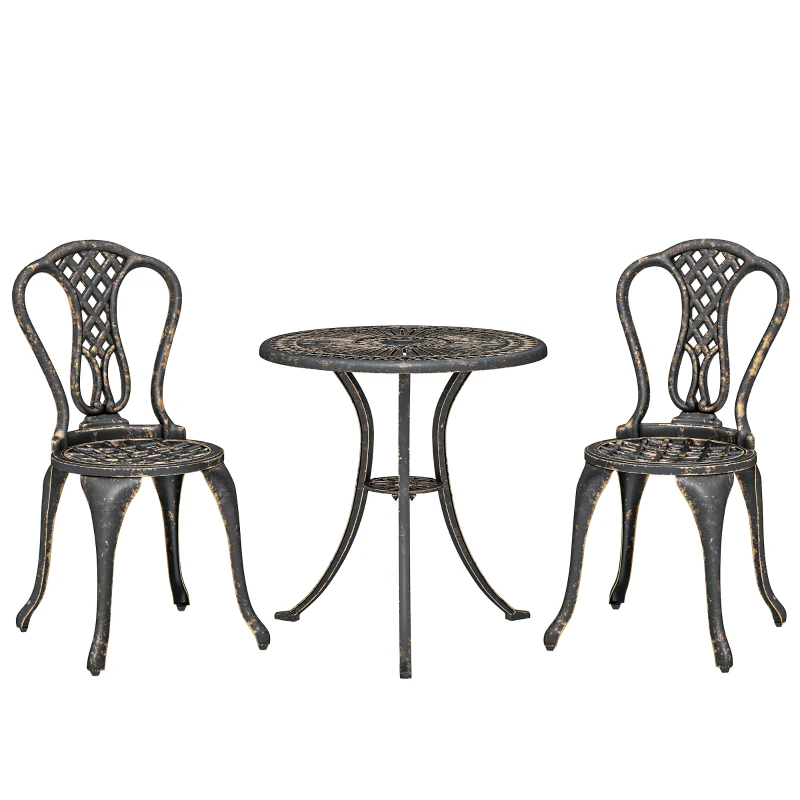 Outsunny Outdoor Bistro Set for 2 Cast Aluminium Patio Furniture with Round Table Umbrella Hole Brown