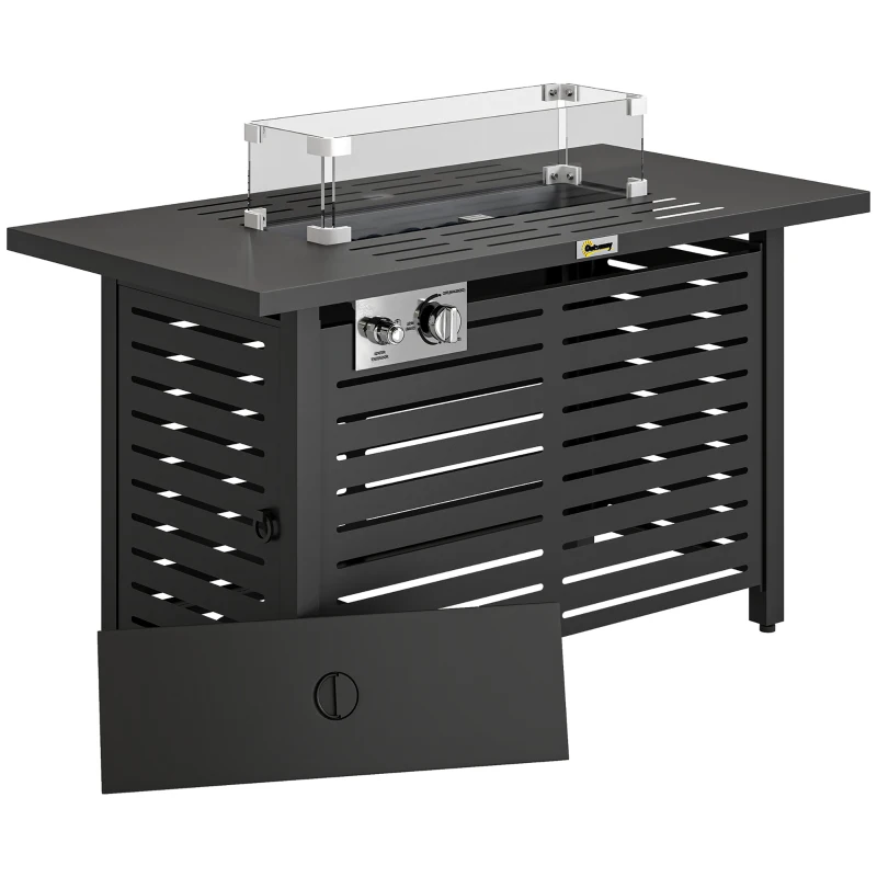 Outsunny Propane Gas Fire Pit Table, Outdoor Firepit with 43" Steel Tabletop and Lid, 50,000 BTU Pulse Ignition Fire Table w/ Stainless Steel Burner, Glass Wind Guard, and Cover