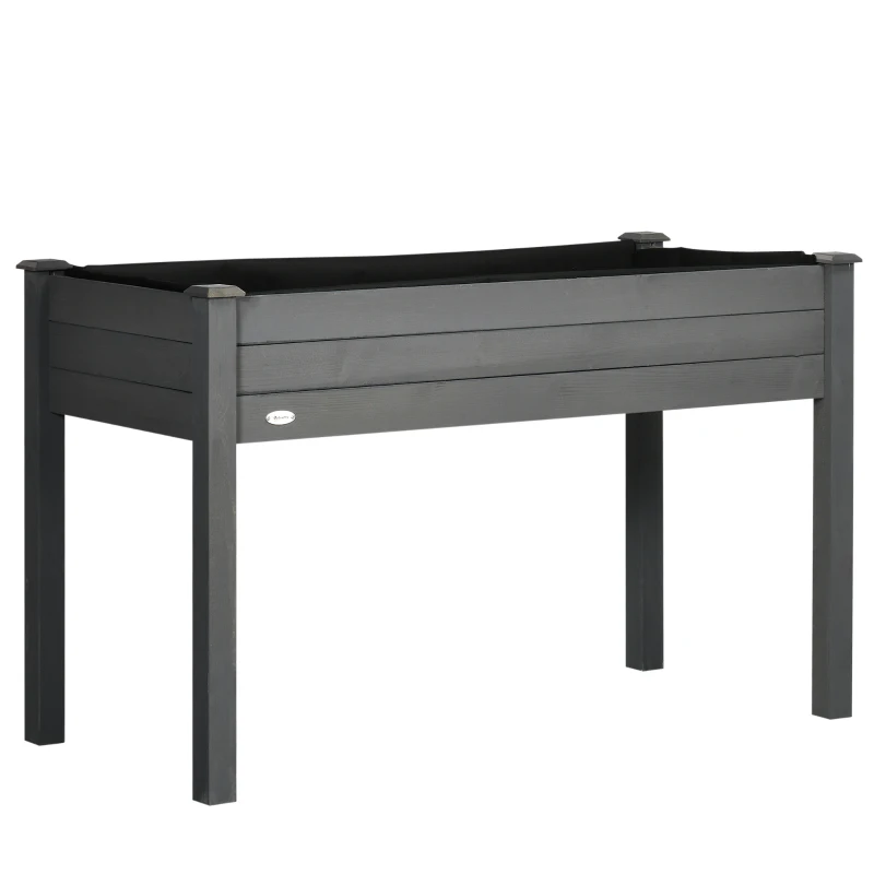 Outsunny Raised Bed for Garden, Wooden Elevated Planter Box with Bed Liner, for Flower Vegetable Herb, Dark Grey