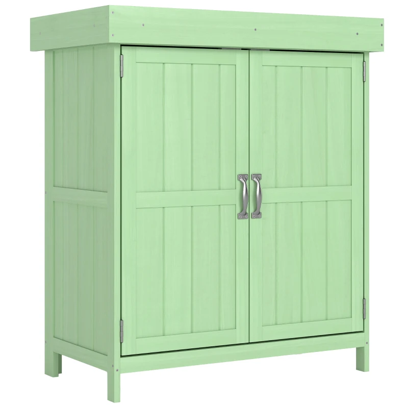 Outsunny Small Shed, Wooden Garden Shed with Openable Hinged Roof and Removable Shelf, 74 x 43 x 88 cm, Light Green