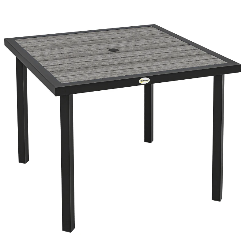 Outsunny Square Garden Dining Table with Parasol Hole, Slatted Top, Metal Frame, 86 x 86 x 71 cm, Light Grey