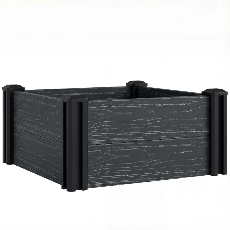 Outsunny Vinyl Raised Garden Bed Kit, 2 x 2 x 1ft Modular Elevated Garden Box with Slotting Legs and Open Bottom, Dark Grey