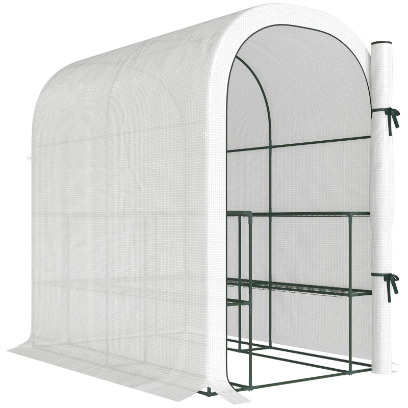 Outsunny Walk-in Greenhouse with Shelves, Small Greenhouse with PE Cover and Roll-up Door, 123 x 187 x 189 cm, White
