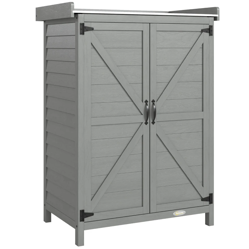 Outsunny Wooden Garden Shed, Garden Tool Storage Shed with Shelf and Side Hooks, 71.5 x 39 x 95 cm, Grey