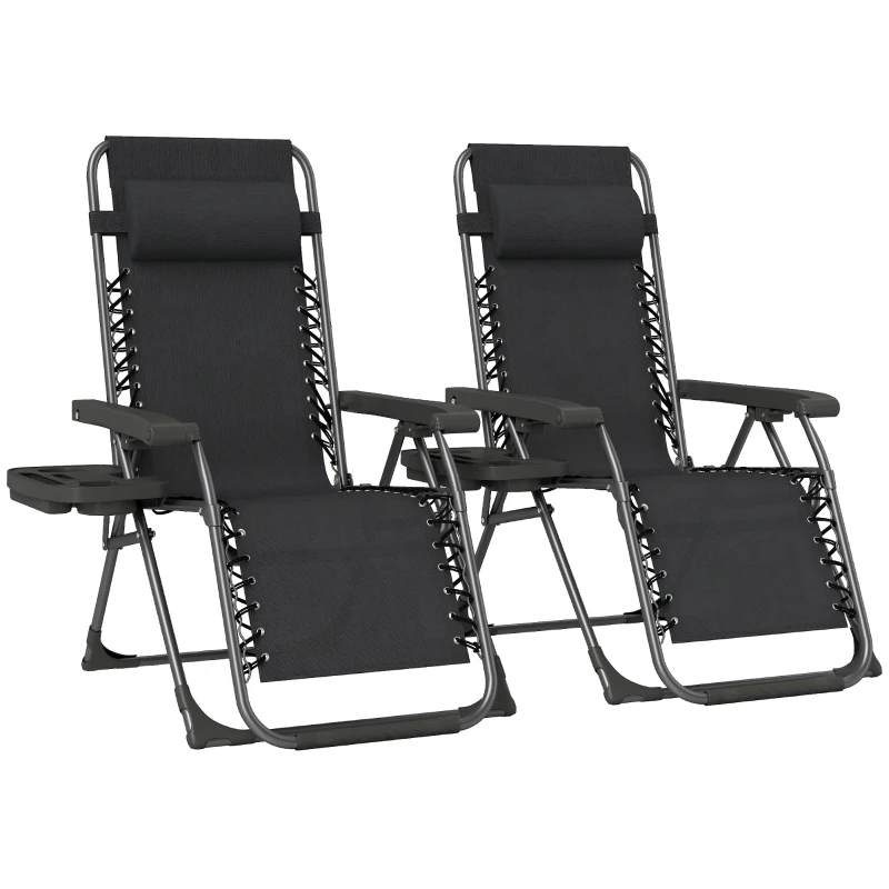 Outsunny Zero Gravity Chairs Set of 2, Folding Sunloungers Reclining Garden Chairs with Cup Holder, Headrest, Black(m-2)
