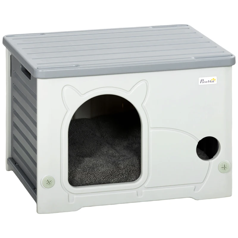 PawHut Cat House Stackable Pet Shelter with Removable Cushion for Indoor Outdoor Use Grey