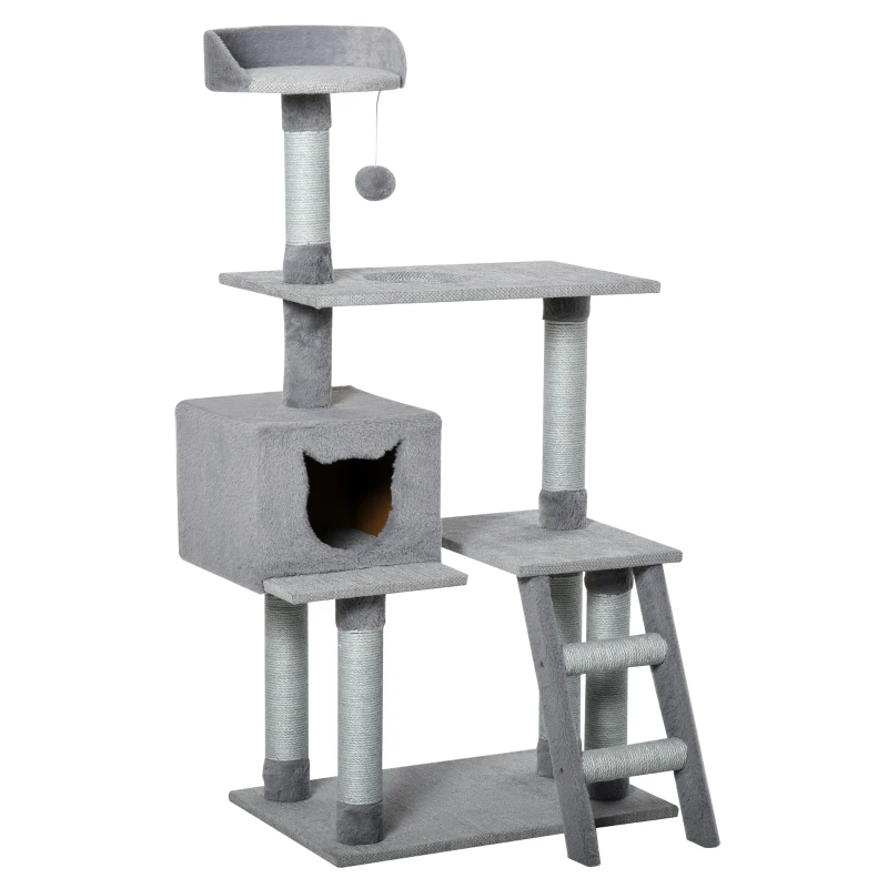 PawHut Multi-Level Cat Tree Tower for Indoor Cats Activity Center Climbing Frame Kitten House Furniture with Jute Scratching Posts Ladder Dangling Ball Toy Condo Perch Grey