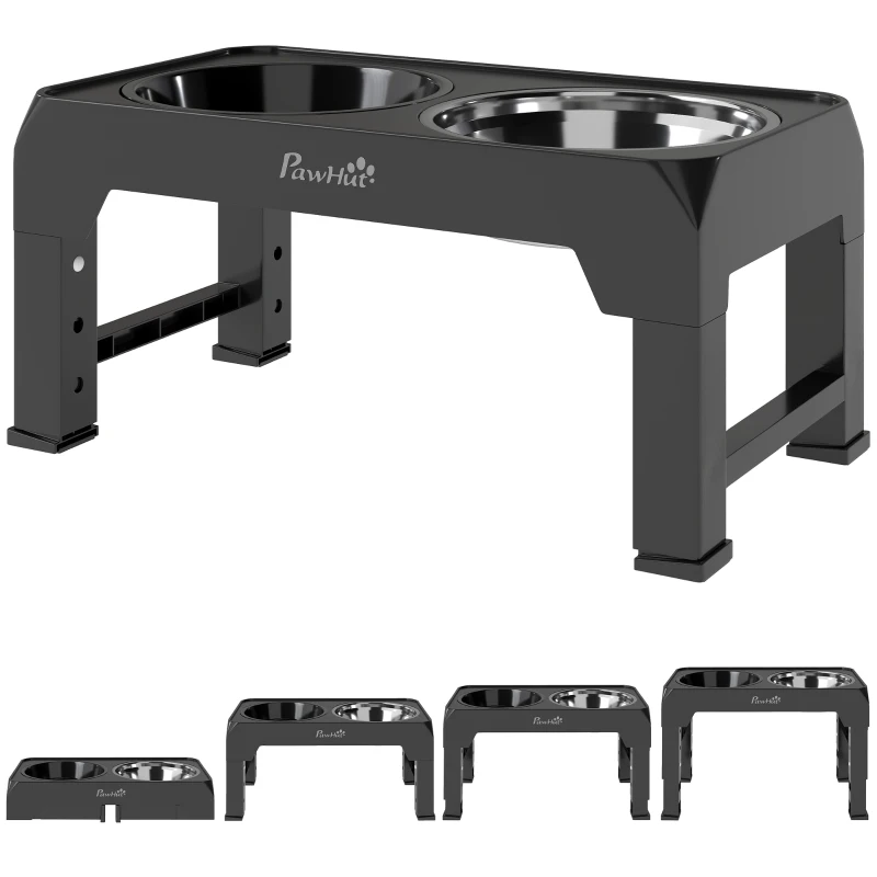 PawHut Raised Dog Bowl, Foldable Elevated Dog bowls with Slow Feeder, 4 Adjustable Heights, for Small Medium Large Breeds
