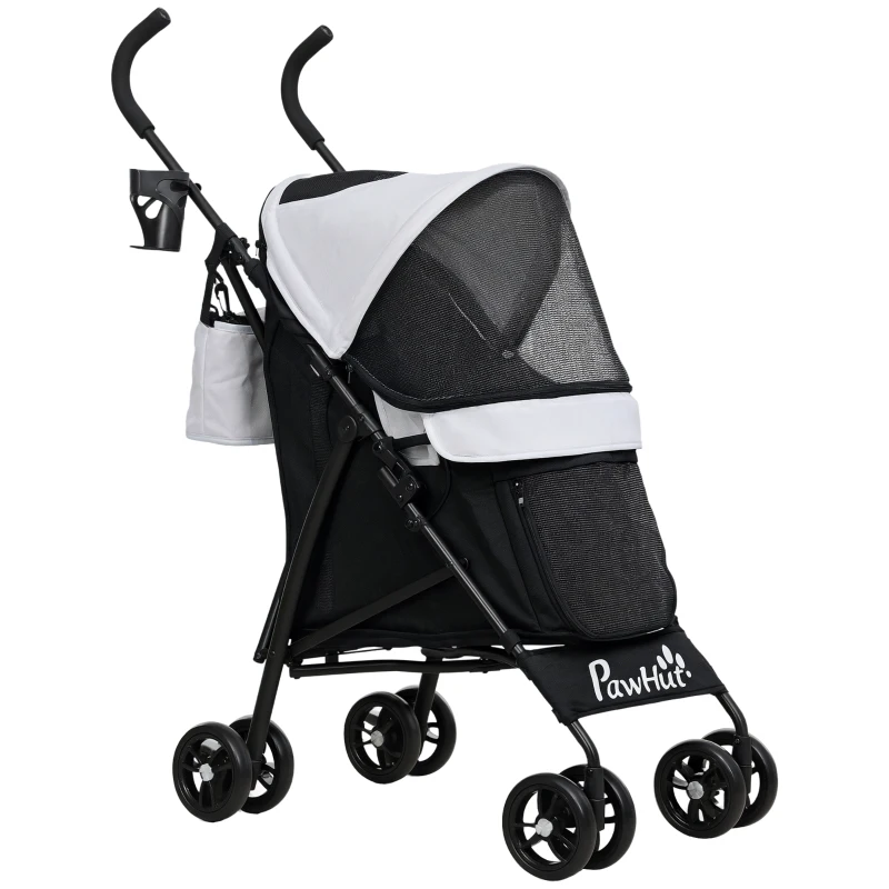 PawHut Foldable Dog Stroller, Lightweight Dog Pram w/ Shoulder Strap, Storage Bag, Cup Holder, Light Grey