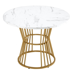 Modern Round Dining Table with MDF Marble Pattern Top, Gold+White