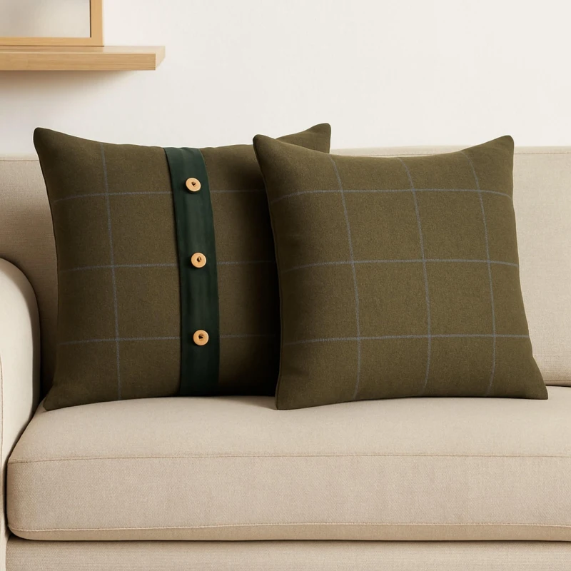 Set of 2 Quinn Cushion with Soft Cotton Blend and Velvet Pile, Handcrafted Pillow Ideal for Sofa and Bed, 45L x 45W x 15H cm, Olive Green
