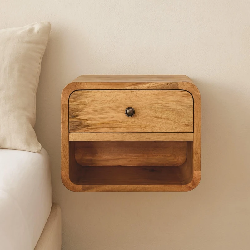 Solid Wood Mini Floating Bedside with Drawer and Open Shelf, Space-Saving Desk with Sturdy Steel Frame, 25L x 30W x 25H cm, Brown