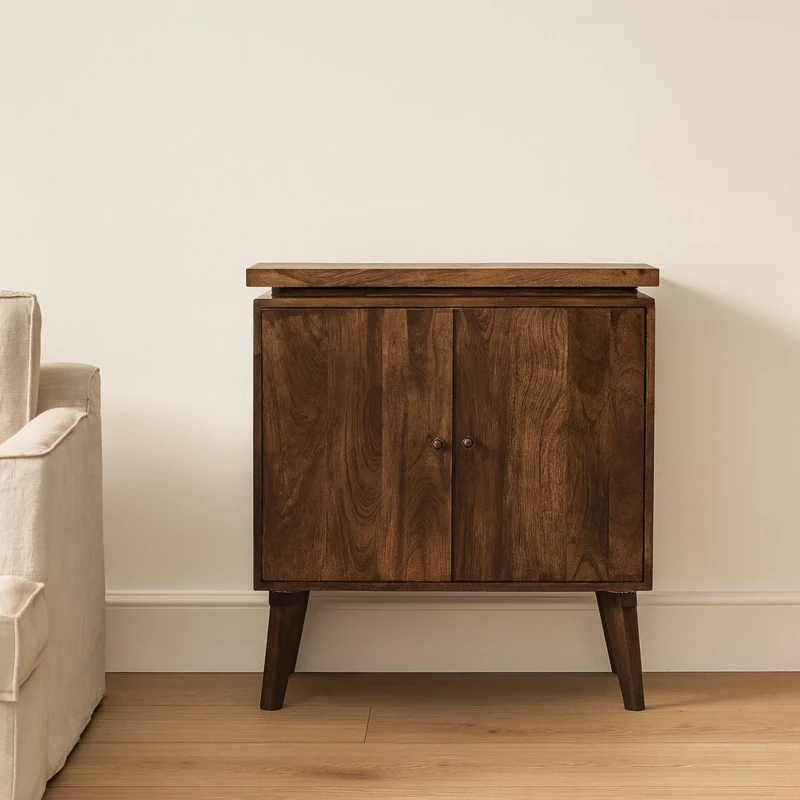 Solid Wood Platform Cabinet with 2-Door and Stain-Based Finish, File and Storage Cabinet for Bedrooms, 35L x 75W x 80H cm, Brown