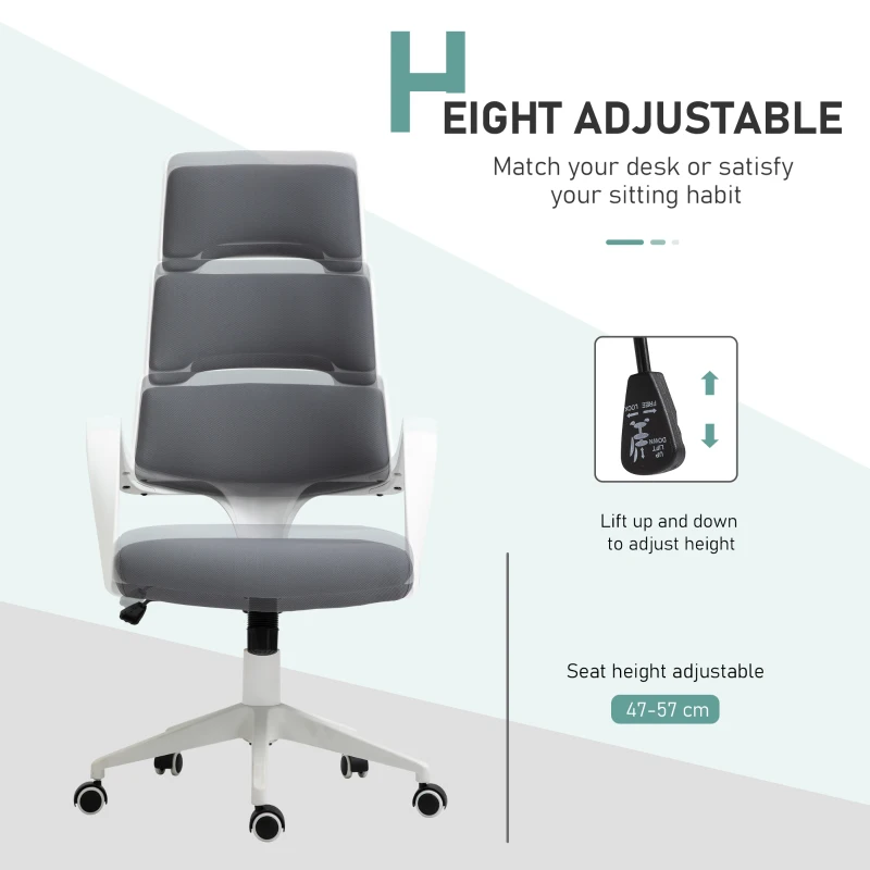 Vinsetto High Back Office Chair Work Executive 360 Swivel w/ 5 Castor Wheels Foam Padding Ergonomic Wide Arms Deep Grey