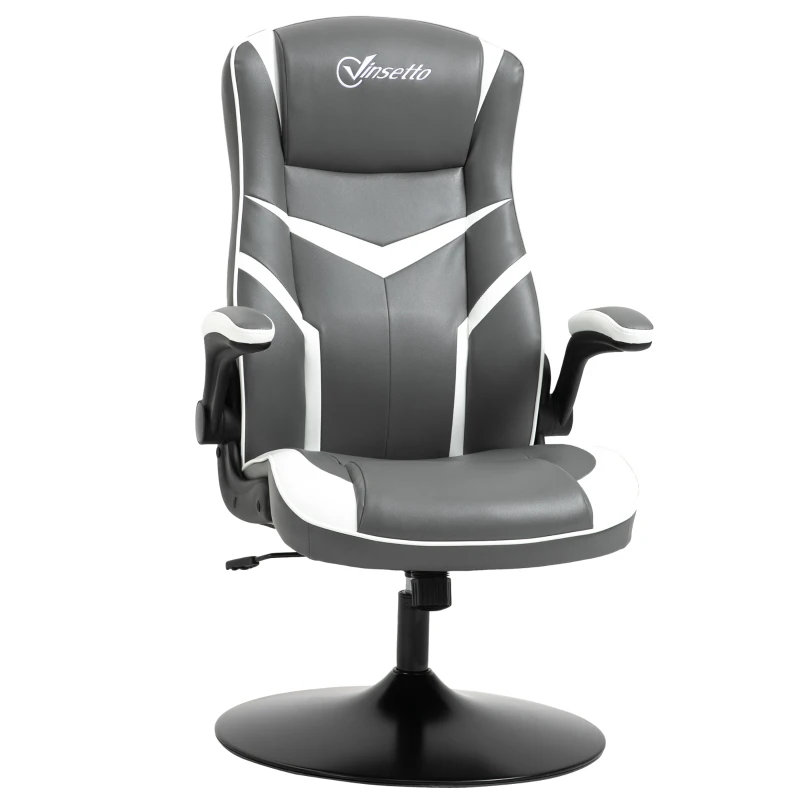 Vinsetto Gaming Chair Ergonomic Computer Chair with Adjustable Height Pedestal Base, Home Office Desk Chair Faux Leather Exclusive Swivel Chair, Grey