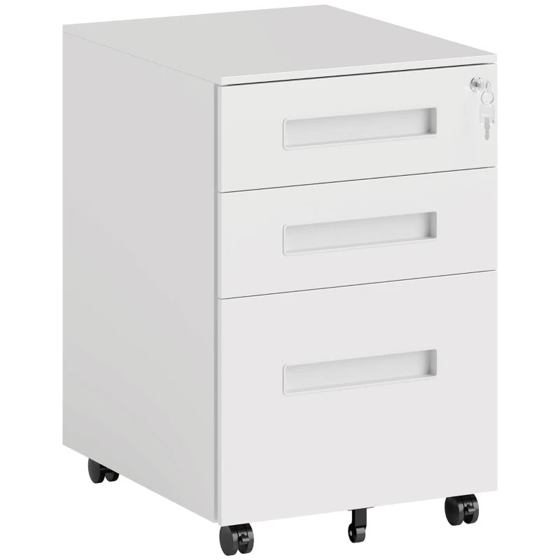 Vinsetto Three-Drawer Steel Filing Cabinet - White