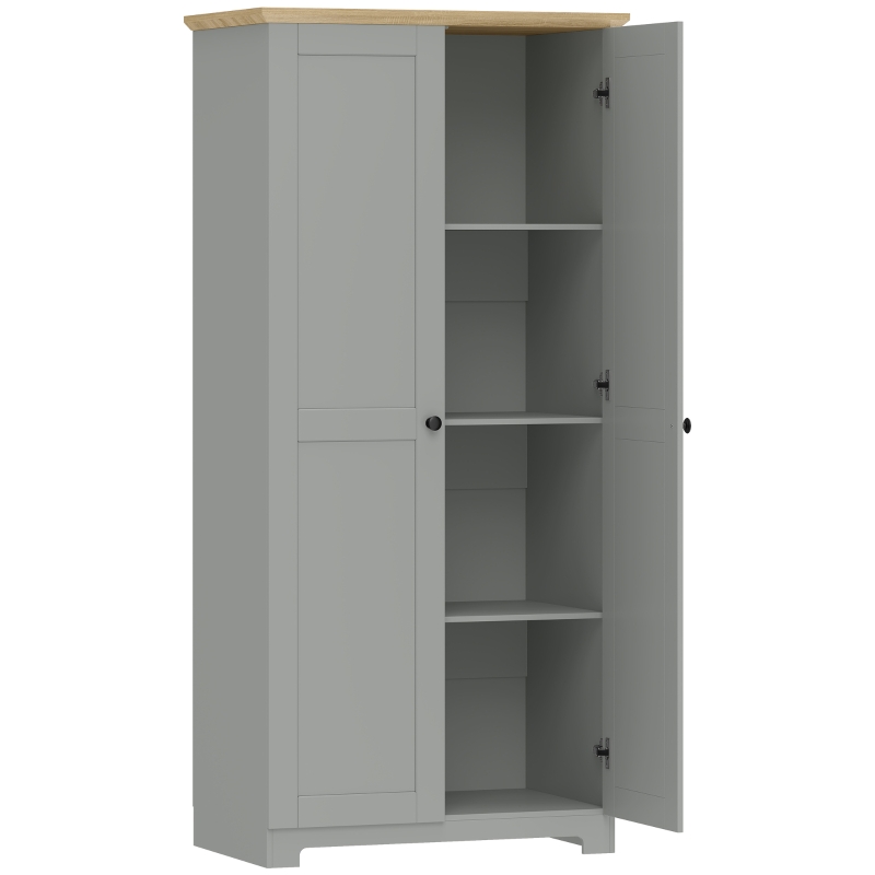 HOMCOM Kitchen Cupboard, 172cm Freestanding Storage Cabinet with Doors and Shelves, Grey