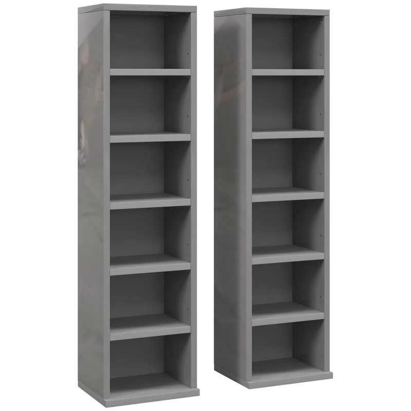 HOMCOM Set of 2 CD Media Display Shelf Unit Tower Rack with Adjustable Shelves, High Gloss Grey